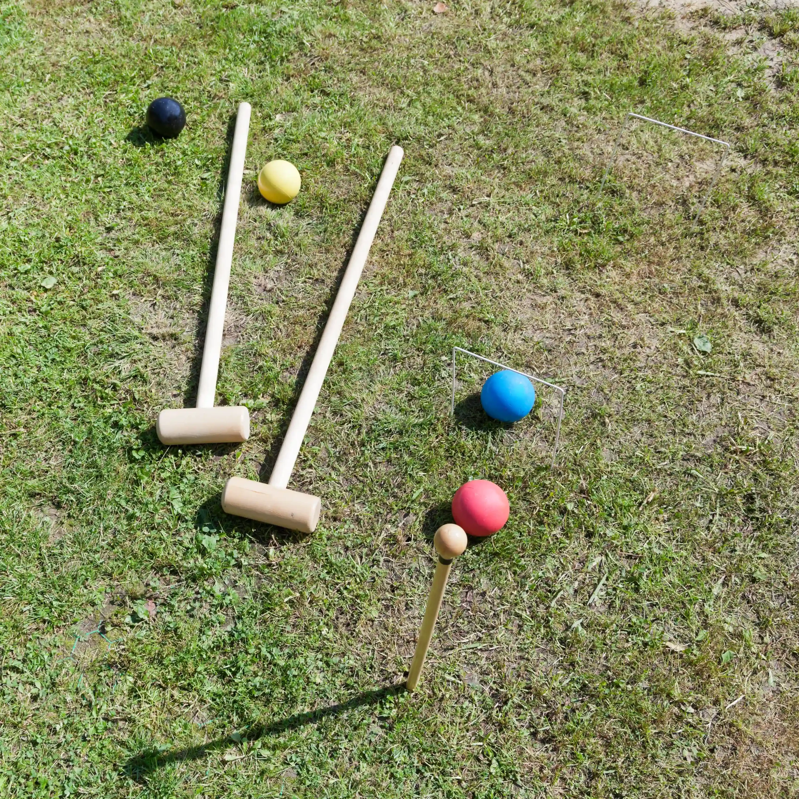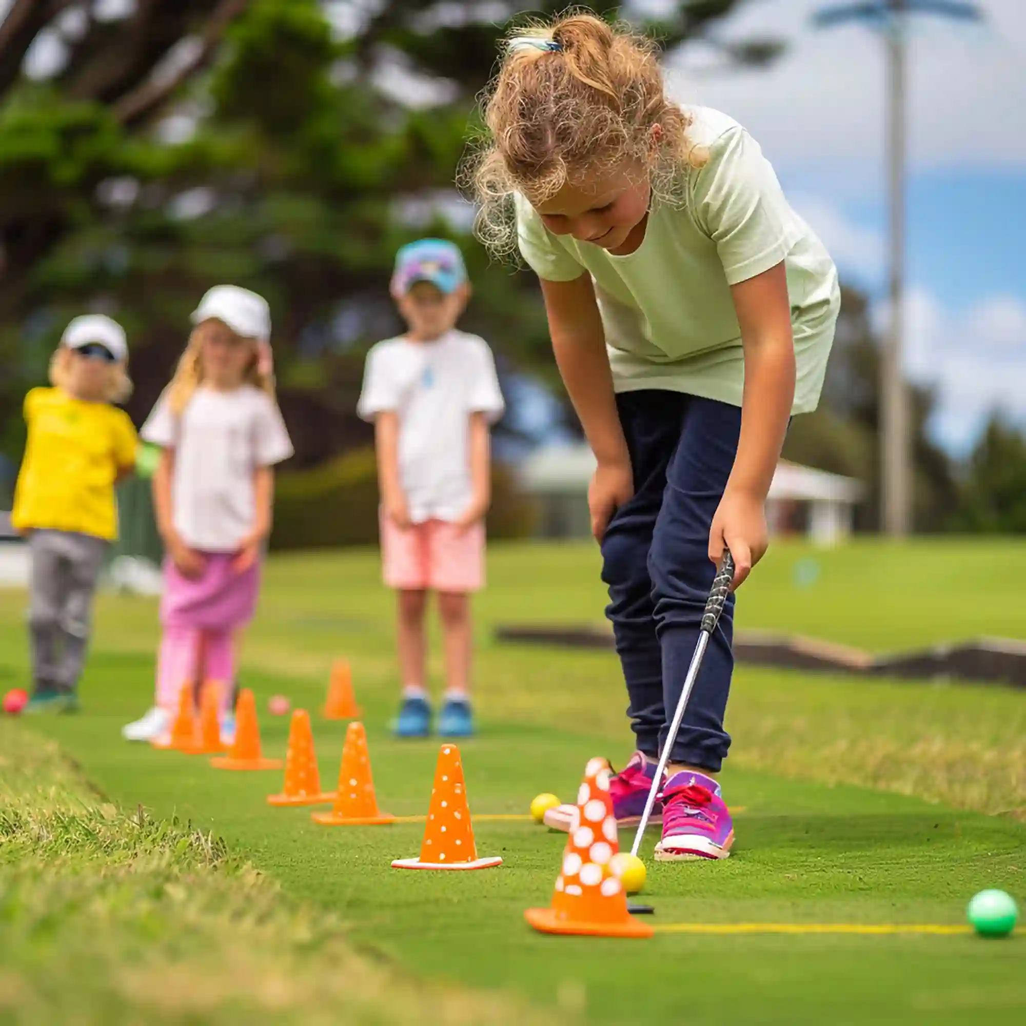 : (2) clubs, (2) flags with holes, (2) balls, (6) obstacles, (1) carry bag